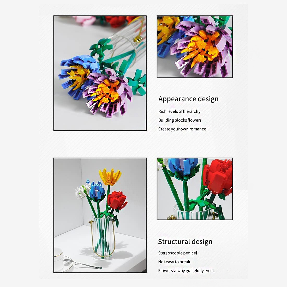 [Bouquet Contents] Each bouquet has about 80-100 parts to make a beautiful flower model.
